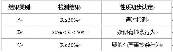 注:R为文字复制比,是指被检测论文与非本人学术成果重合字数占全文的百分比。