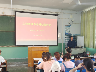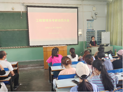 工程管理系在教二楼梯六教室成功举行了考研动员大会,工程管理系全体学生参会,会议由系负责人张宗领主持,肖琪聃副院长、王颂老师、马文强老师、王芳老师、陈良琼老师、陈晓宇老师、梁维云老师出席了此次活动。