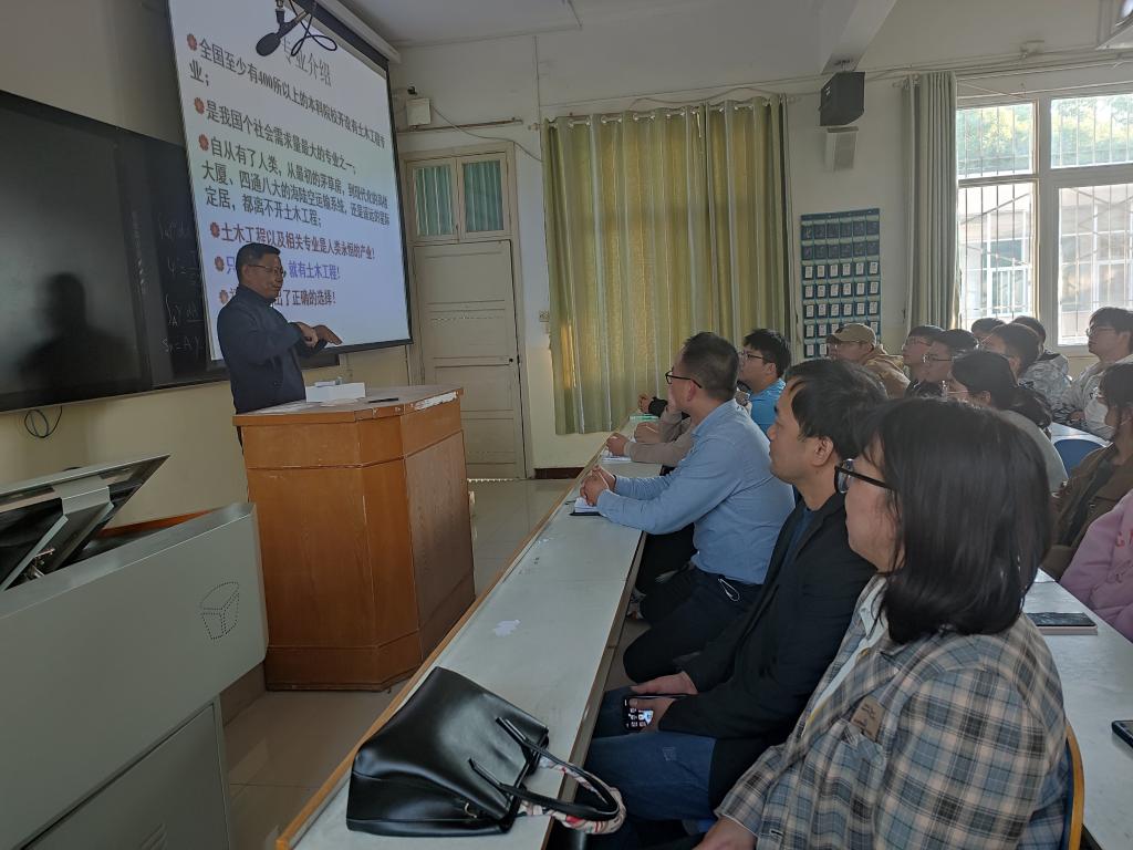 为使2022级土木工程专业新同学能更好的适应大学生活,更加详细的了解土木工程专业,明确学习要求。土木工程系于2022年10月13日下午四点半在教3-12教室举行了新生专业入学教育活动,本次活动邀请了我系王述超老师为专家做专题讲座。冀鹏副书记,高春华、张昊、邓林老师参加了本次讲座。