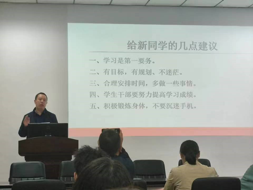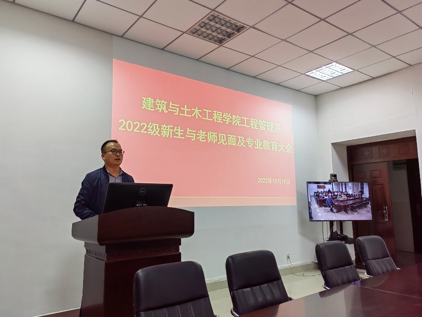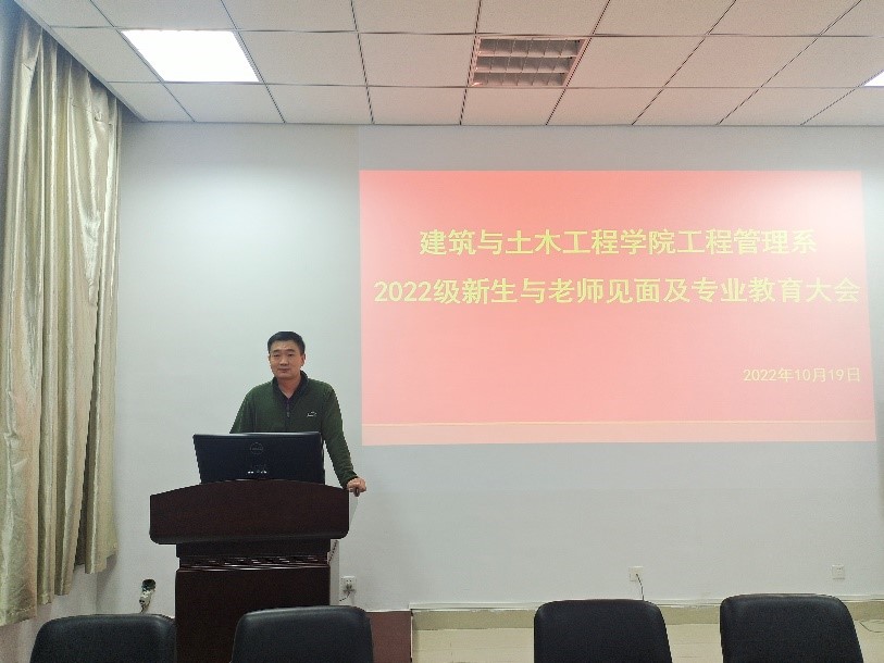 张宗领老师首先给新同学介绍了工程管理系的每位老师及办公地点,新同学在专业方面如有疑惑可主动联系工程管理系的老师们,老师们将会耐心解答。随后张宗领老师给新同学提了几点建议:一、学习是第一要务;二、有目标,有规划,不迷茫;三、合理安排时间,多做事情,锻炼多方面能力;四、学生干部更要努力提高学习成绩;五、积极锻炼身体,不要沉迷手机。希望每位新同学的大学生活充实而有意义,为未来的美好前程打下坚实的基础。