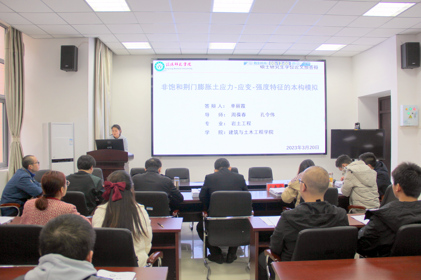 2023届硕士研究生学位论文预答辩会顺利举行。学校实验室建设与设备管理中心主任高洪波教授、建工学院院长周葆春教授、科技处副处长刘林超教授、副院长肖琪聃副教授、副院长袁晓辉副教授,高春华、周峰、陈磊磊、马文强、尹晓萌副教授,闫东讲师和全体硕士研究生参加了预答辩会。会议由肖琪聃主持。