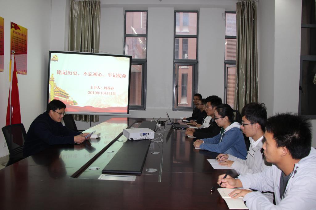 10月15日,学院副院长陈哲在综合实验楼206会议室为学生第三党支部全体党员作了题为《学习习近平关于“不忘初心、牢记使命”重要论述的若干体会》的专题党课。陈哲结合自身所学、所思、所悟,围绕主题教育的重大意义和目标要求,牢记高等教育的初心和使命,努力培养德智体美劳全面发展的社会主义建设者和接班人的问题与大家交流学习心得体会。陈哲指出,全体党员都应当认真检视自己在践行初心和使命过程中存在的问题,剖析根源,认真整改,守住初心,担起使命,为学校和学院的发展建设贡献力量。