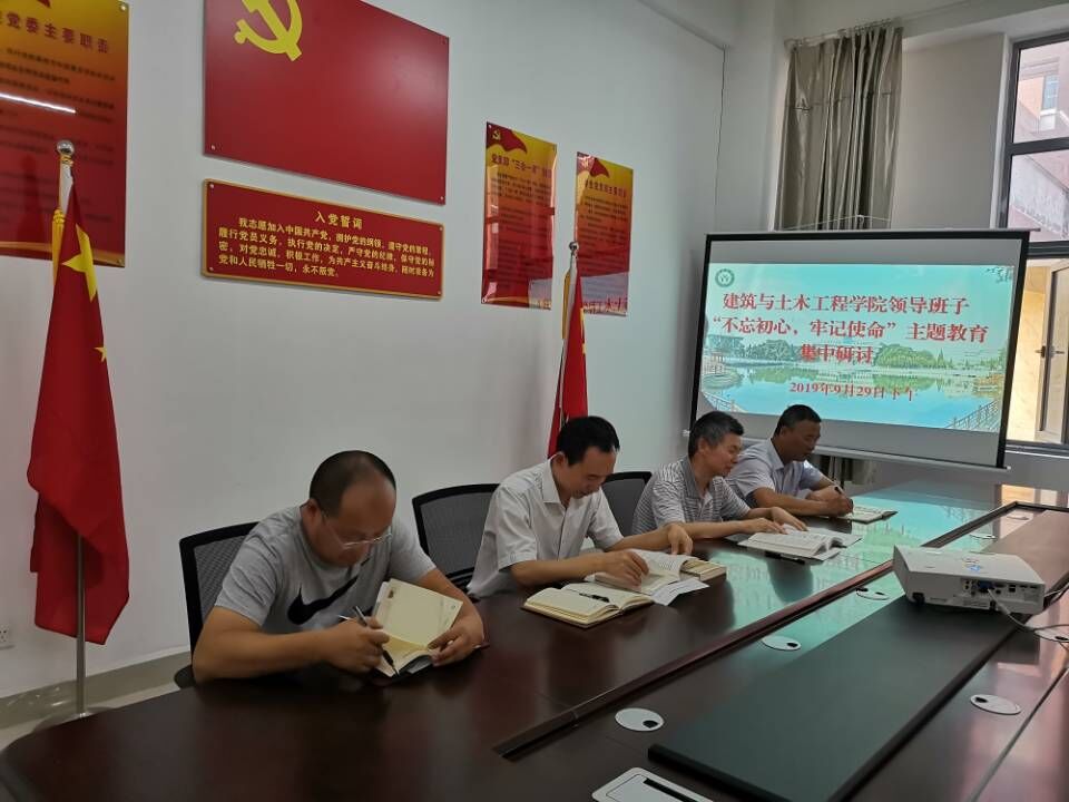 “不忘初心、牢记使命”主题教育集中学习研讨活动在综合实验楼203室“党员之家”举行。学院党委班子成员参加学习研讨。活动由学院党委书记黄学玉主持。
