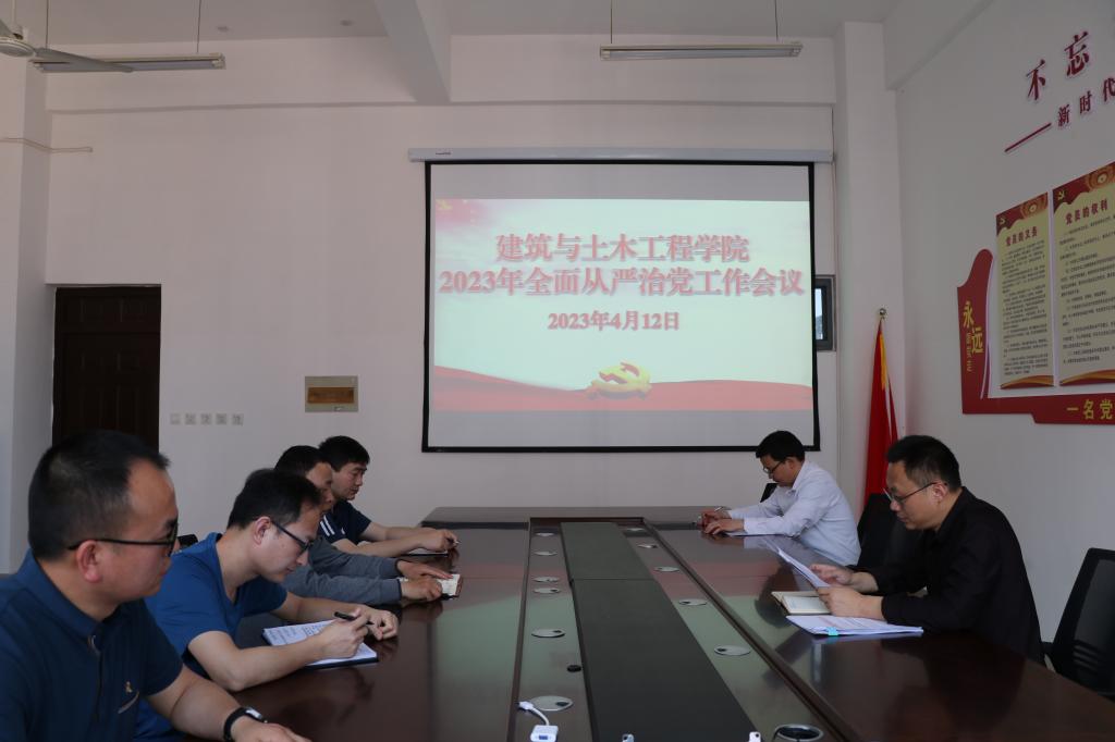 在综合实验楼402会议室召开2023年全面从严治党工作会议。学院领导班子全体成员参加会议。会议由学院党委书记方明科主持。