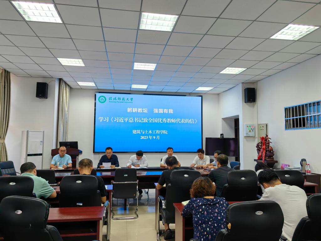 组织全体教师在综合实验楼206会议室学习《习近平总书记致全国优秀教师代表的信》,共话教书育人感悟,共谋学院事业发展。
