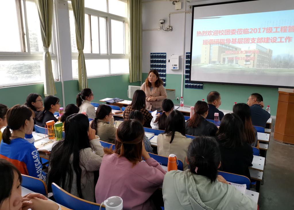 2017级工程管理班开展了基层团组织建设主题座谈会,会议由学院党委副书记方明科主持。