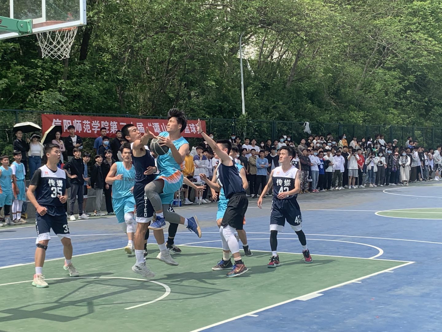 随着一声哨响,比赛在紧张、激动的氛围中开始。男篮比赛上半场,传媒学院队员严防死守,占据很大优势,Sex8