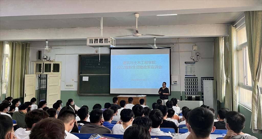 于9月14日在教2-T5召开2022级全体学生参加的2022级学生资助政策宣讲会。