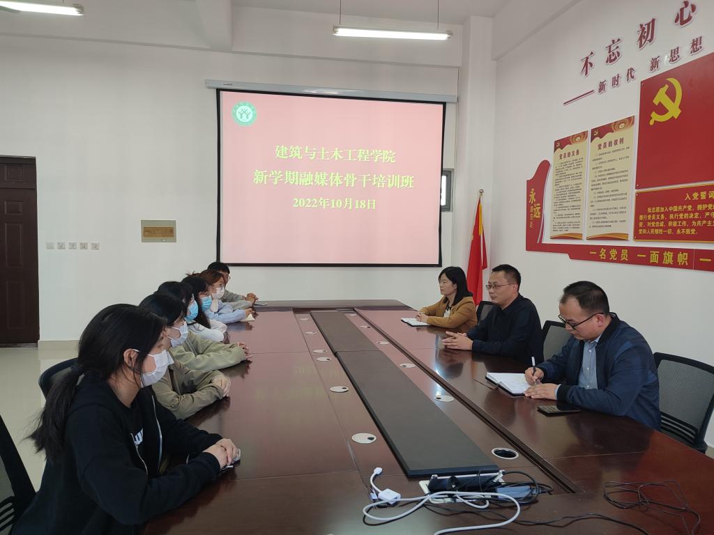 在综合实验楼402办公室举办融媒体骨干培训班,院党委书记方明科、党委副书记冀鹏、张海燕老师、邓林老师以及Sex8