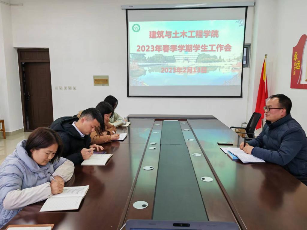 召开2023年春季学期学生工作会。学院党委副书记冀鹏和全体专兼职辅导员参加会议。