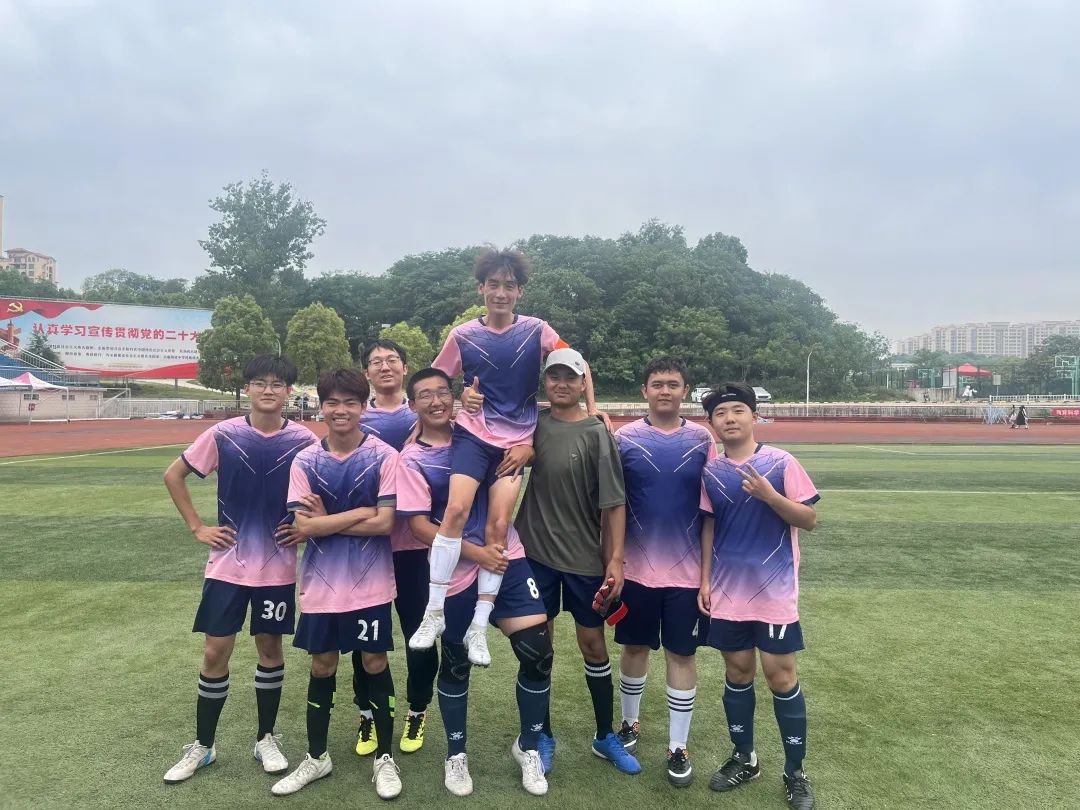 来自2021级和2022级的8名小将首次参赛。作为一支刚组建的足球队,他们朝气蓬勃、斗志昂扬,为比赛做好充足准备。赛前刻苦训练,赛上奋力拼搏,赛后认真总结,以小组第一出线,并在八进四淘汰赛中击败强敌,最终取得了第四名的好成绩。