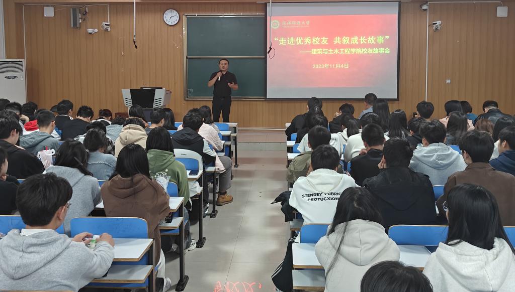 在计科院107举办2023年首场“走进优秀校友 共叙成长故事”校友故事会活动。学院2011级土木工程专业校友廖荣森以“越努力,越幸运”为题与150名在校生分享成长故事,分享会由学院党委副书记冀鹏主持。