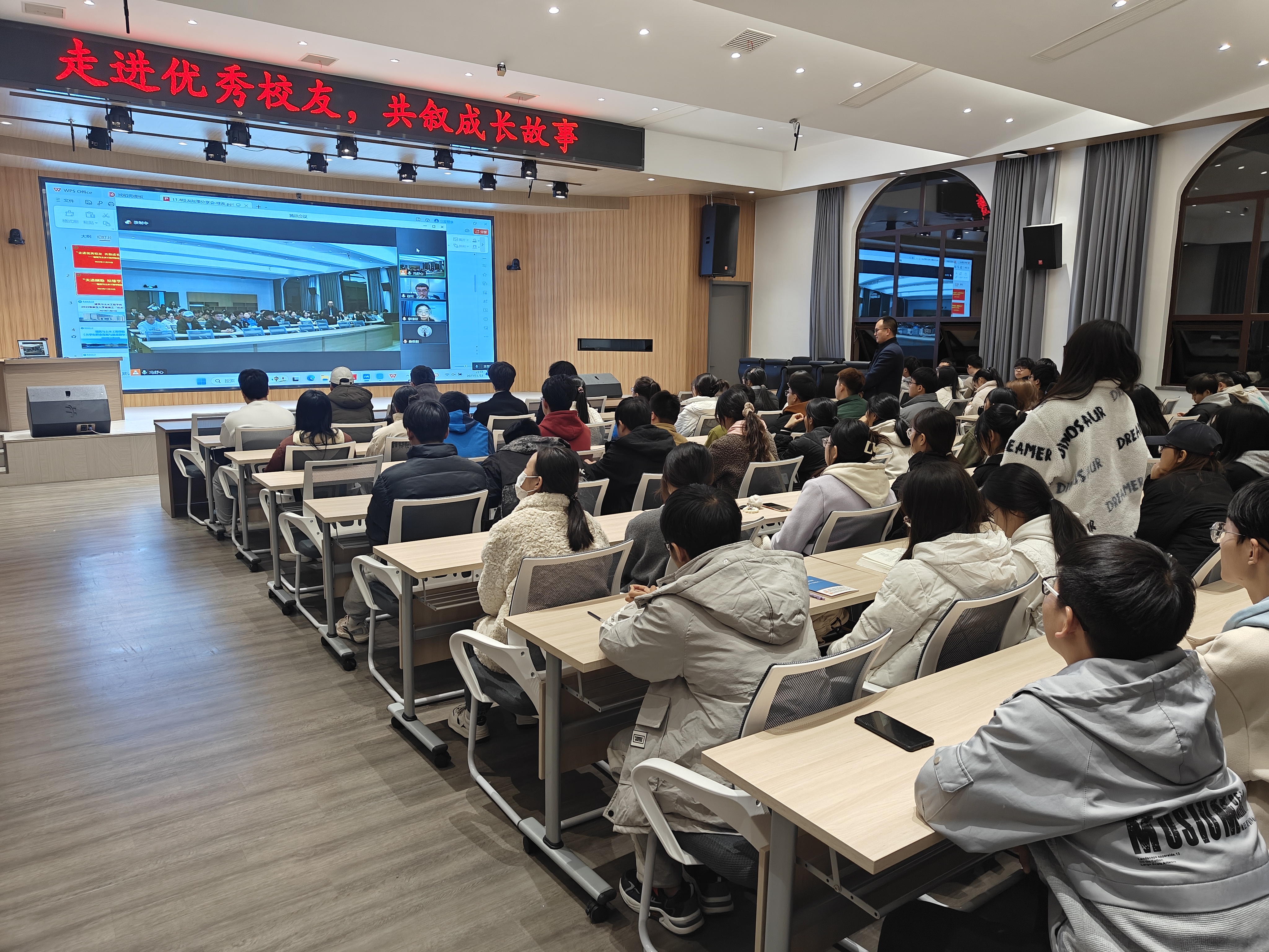 在谭山书院博雅讲堂举办“走进优秀校友 共叙成长故事”校友故事会(第三场),2011级土木工程专业校友李禄欣,2014级工程管理专业校友赵旺应邀在线为150余名在校生作专题辅导报告。报告会由学院党委副书记冀鹏主持。