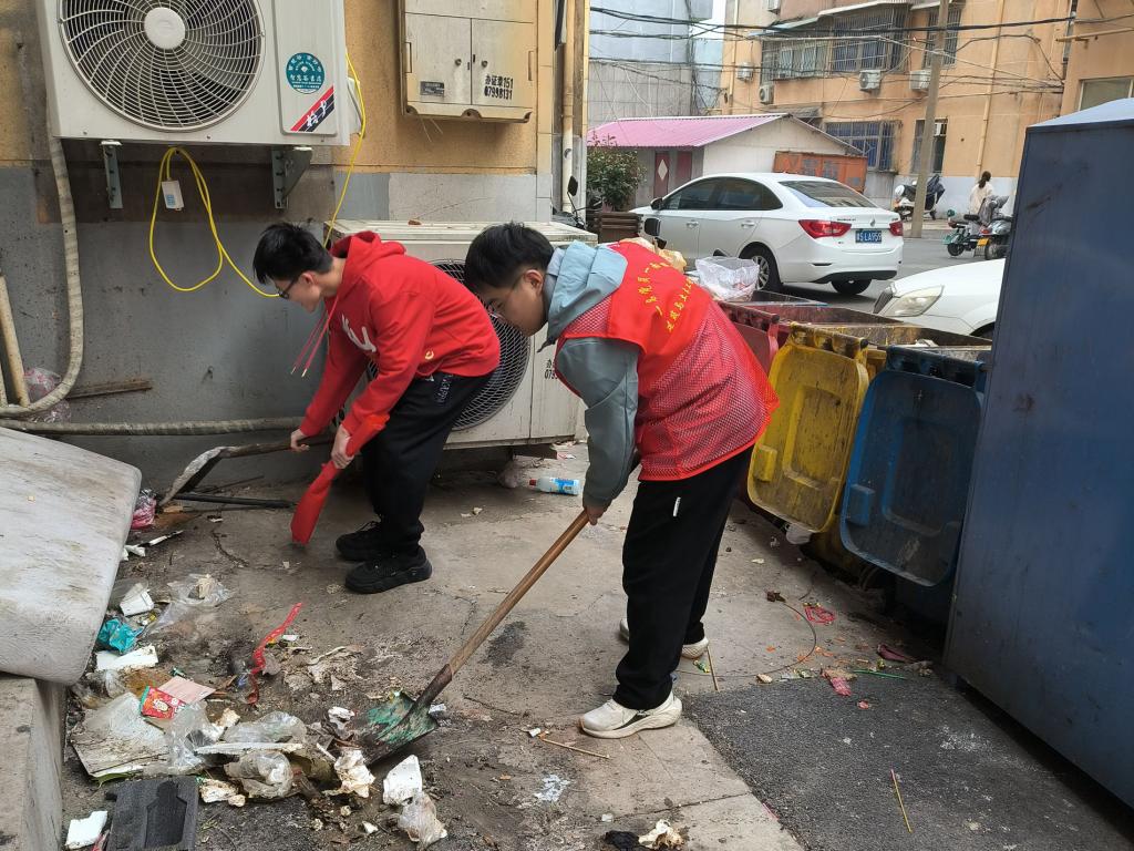 春风送暖,和谐社区共建设。组织学生在红星社区开展志愿服务活动,大家分工合作,干劲十足,一队同学在红星社区家园清理街道以及楼道的垃圾,打造良好的人居环境,另一队则跟随城管执法车到浉河边清理乱停乱放的电动车,保障道路安全畅通,消除安全隐患,切实做到还路于民。此外,志愿者们还将准备的防范电信诈骗宣传册发放给社区居民,对电信网络诈骗的种类、惯用手段和防范常识等内容进行介绍,提醒群众要全面加强自身安全防范意识,守好自己的“钱袋子”。