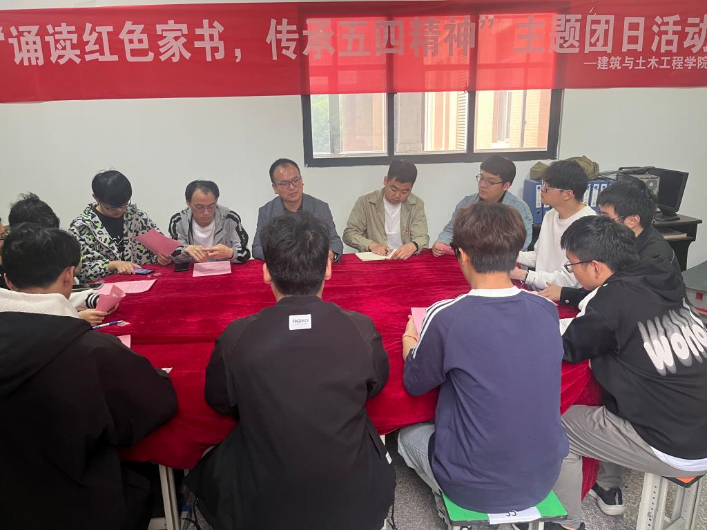 红色家书明初心。4月30日,学院在综合实验楼2楼活动室开展“诵读红色家书,传承五四精神”主题团日活动,2022级土木工程1班的同学们声情并茂地诵读了陈觉、陆更夫、江姐、夏明翰等人的家书,学院党委副书记冀鹏鼓励大家体悟红色家书字里行间的拳拳情义,领略革命先烈们的家国情怀和初心使命,让五四精神在新时代熠熠闪光。