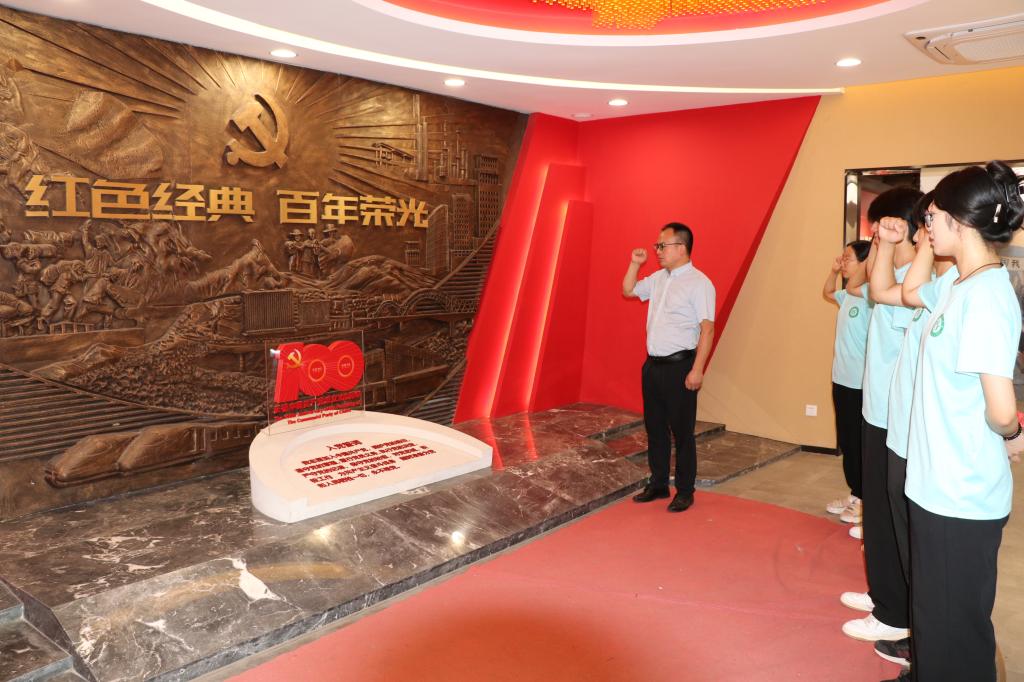 铿锵誓言践初心。在王大湾会议会址纪念馆,实践团成员们怀着崇敬的心情,参观了丰功园、将军馆和不忘初心牢记使命党史教育馆重温了抗日战争期间刘邓大军英勇抗战、挺进大别山的历史,对那段艰苦卓绝的抗战岁月有了更加立体的认识,也看到了党纪律严明、联系群众的光荣传统。参观结束后,师生党员面对党旗,重温入党誓词,誓言铿锵、掷地有声,进一步坚定了大家传承红色基因、永葆奋斗本色的信念与决心。