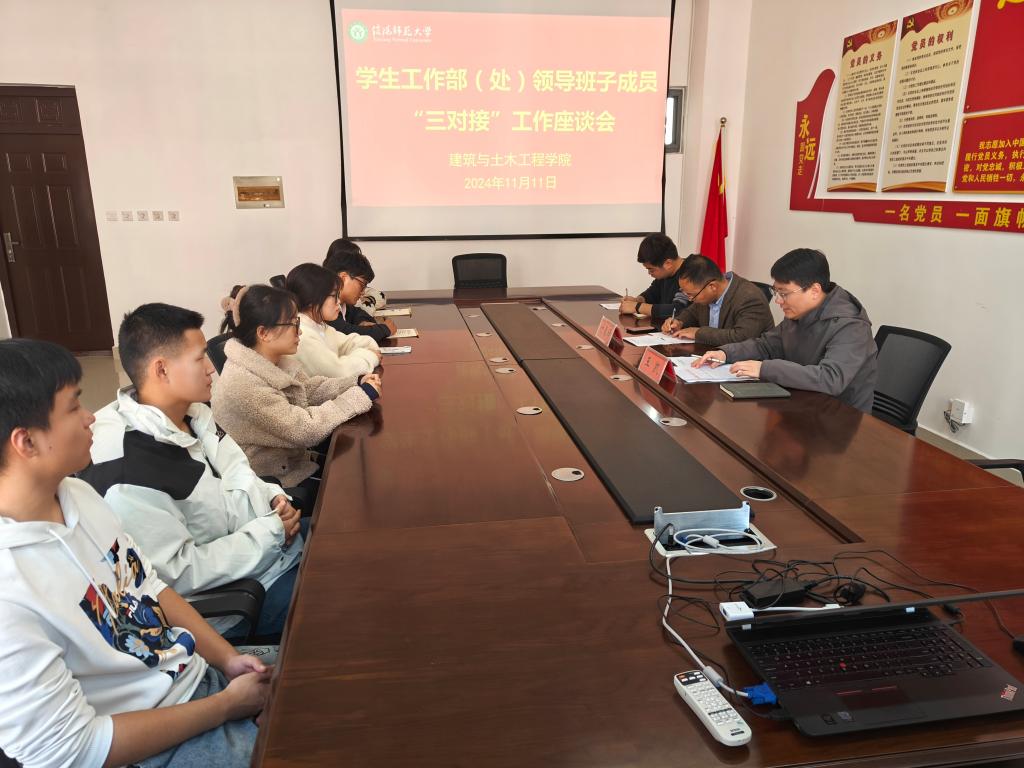 学生工作基本情况,传达了学校《学生工作部(处)领导班子“三对接”制度》精神。班主任冯舒心介绍了对接班级2023级土木工程2班的基本情况。互动交流环节,学生们积极踊跃地分享了他们在思想动态、学业进展、日常生活等方面情况,并坦诚地表达了在生涯规划、班级管理、升学就业等方面所遇到的挑战与困惑。同时,他们还就学生管理工作优化、后勤服务提升、宿舍环境改善等问题,提出了一系列富有建设性的意见与建议。与会领导、老师认真倾听、详细记录,针对学生们提出的问题与困惑,逐一给予解答和指导。