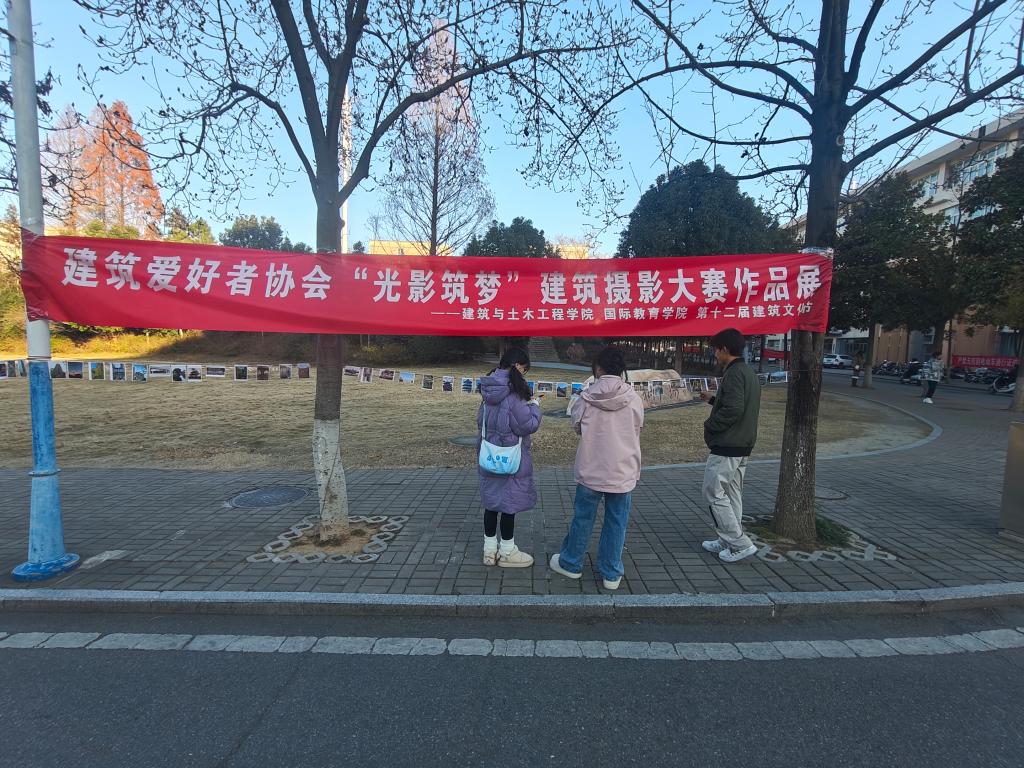 12月14-15日,由建筑与土木学院、国际教育学院主办,建筑爱好者协会承办的“光影筑梦”建筑摄影大赛在一棵树广场进行作品展览。