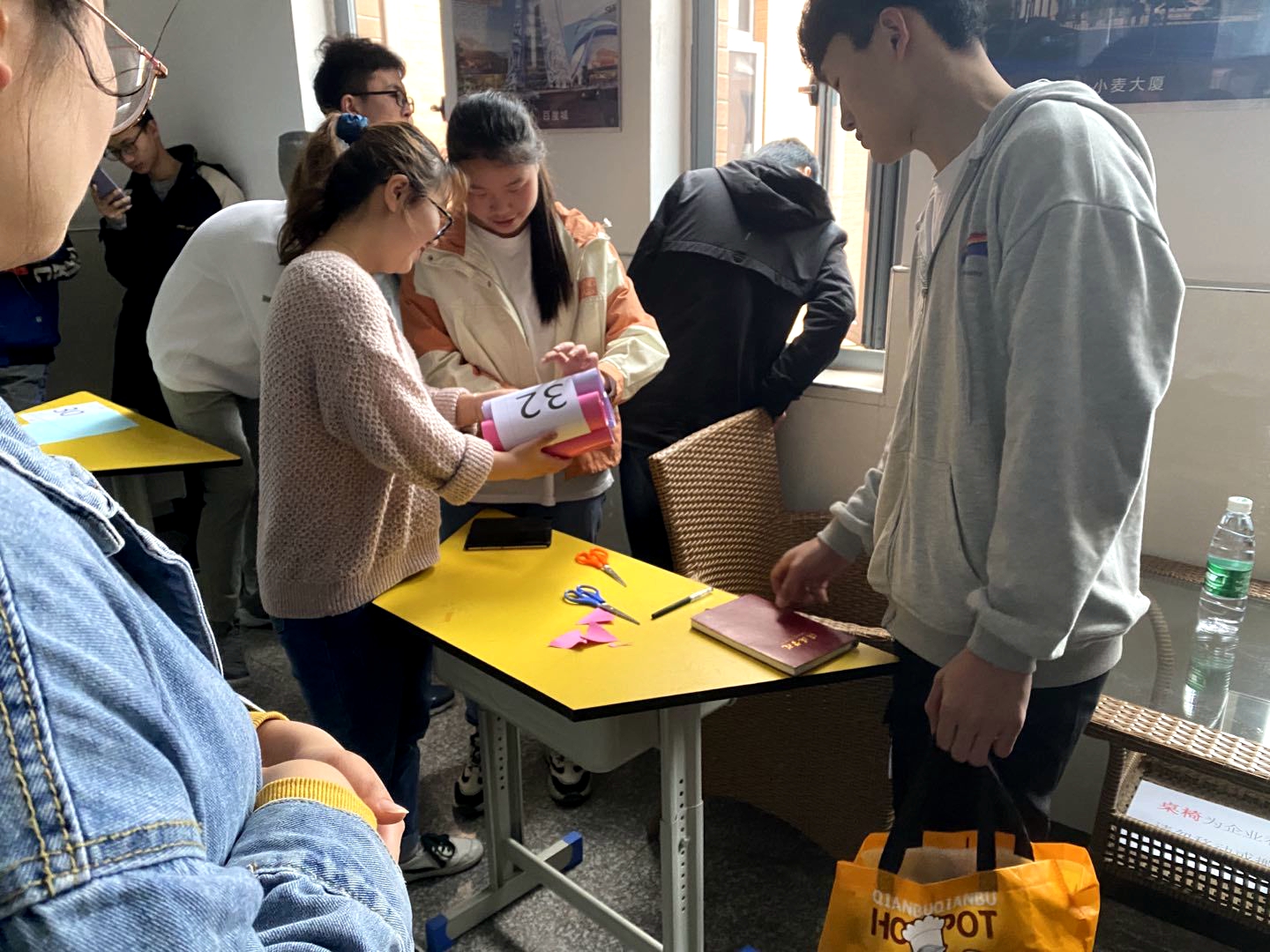 经过前期选拔,共有来自6个学院的30余组选手进入比赛环节,比赛分为专业组和业余组同时进行,活动过程中选手可以充分发挥想象,结合一定的结构模型和受力知识,利用卡纸和胶带建立模型,将鸡蛋放入模型内部,随后将装有鸡蛋的模型从8米高处自由下落,鸡蛋不被摔碎且重量最轻者获胜。活动开始后,各组选手积极思考,巧妙设计,结合自身专业知识与生活经验,用纸棒、胶带等简单的材料,制作出了伞形、三菱锥形、花束形等一件件构思巧妙的结构模型,最后经过自由落体实验,Sex8