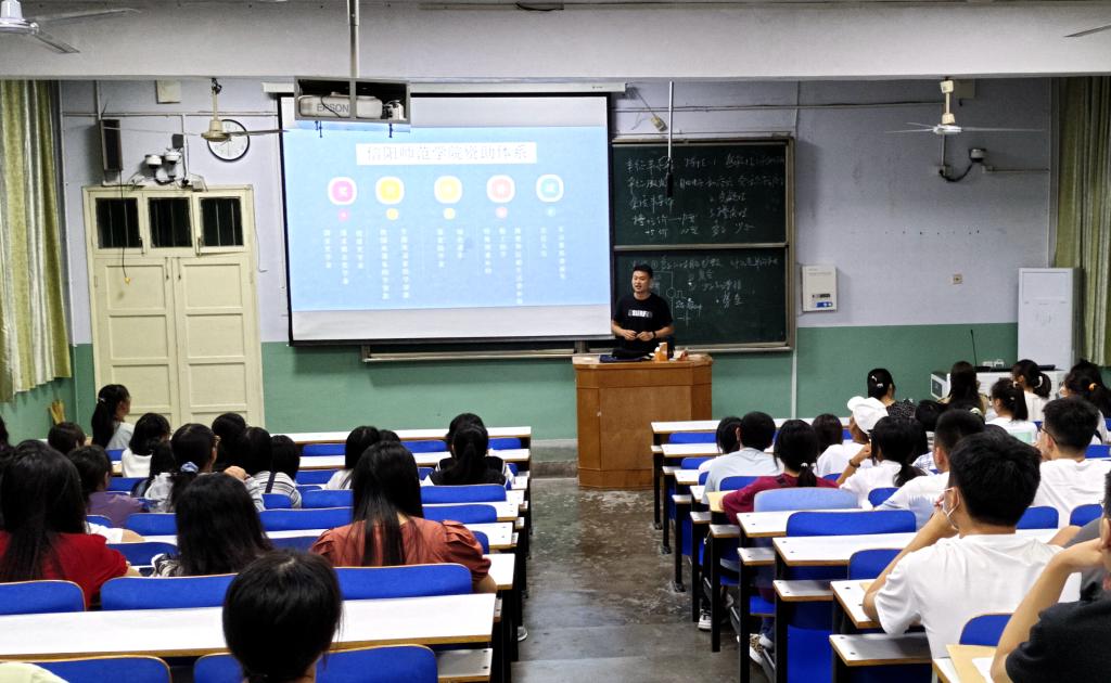 于9月28日晚在教2-T6召开2021级新生资助政策宣讲会。会议由新生班主任张伟主持,新生班助和2021级全体学生参会。
