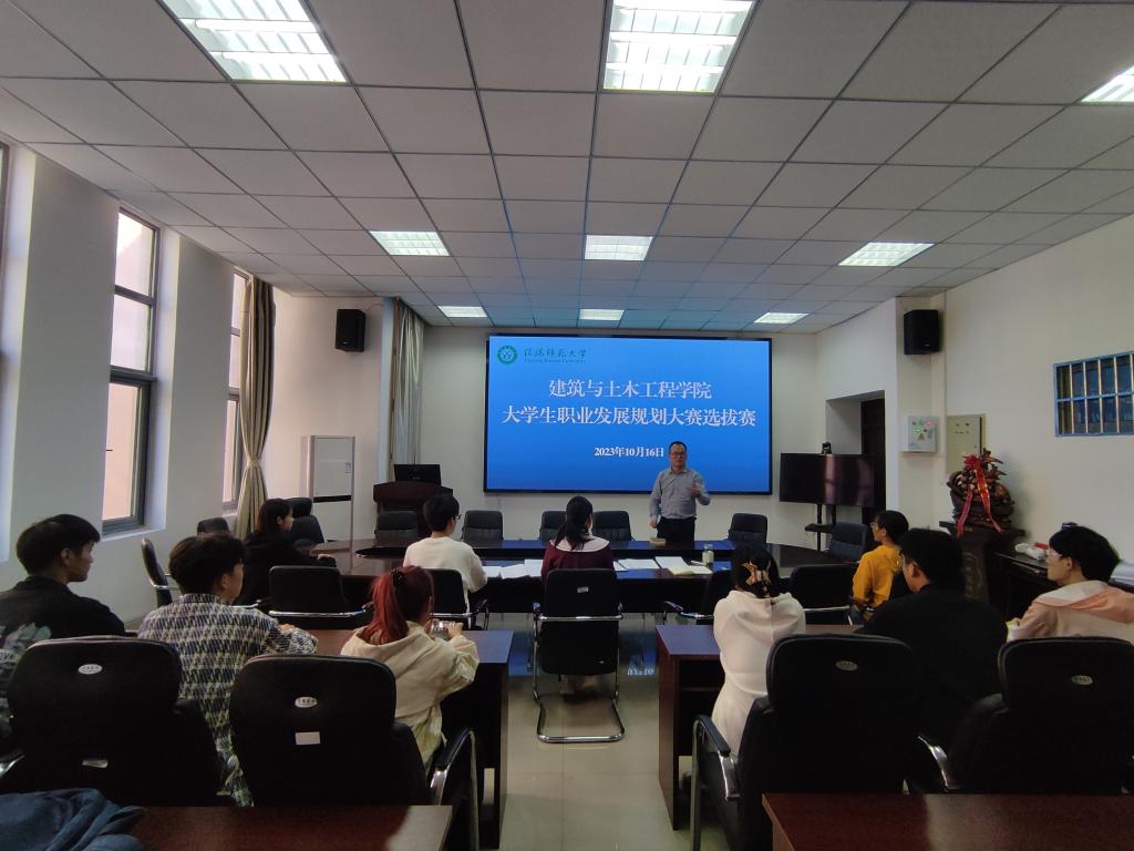 10月16日中午在综合实验楼206会议室举行大学生职业生涯规划大赛选拔赛。学院党委副书记冀鹏、就业秘书邓林、专职辅导员张海燕、冯舒心、10名选手参加了本次比赛。
