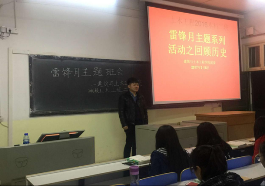 传承雷锋精神,弘扬时代风气。3月5日晚,我院团委组织2015级、2016级全体同学在教3楼以主题班会的形式重温了雷锋精神。专职辅导员张晓博向在场学子详细介绍了雷锋的相关事迹后,组织同学们观看了雷锋纪录片。为使学子们深刻感悟雷锋精神的内涵,班委带领学生集体朗诵《雷锋语录》并倡导学子们将雷锋精神付诸于社会实践中。在场学子纷纷表示,本次系列活动以实践形式充分弘扬了雷锋精神,提升了自身的精神境界,培养了助人为乐优秀品质。发言期间,场上场下互动频繁,现场气氛火热。