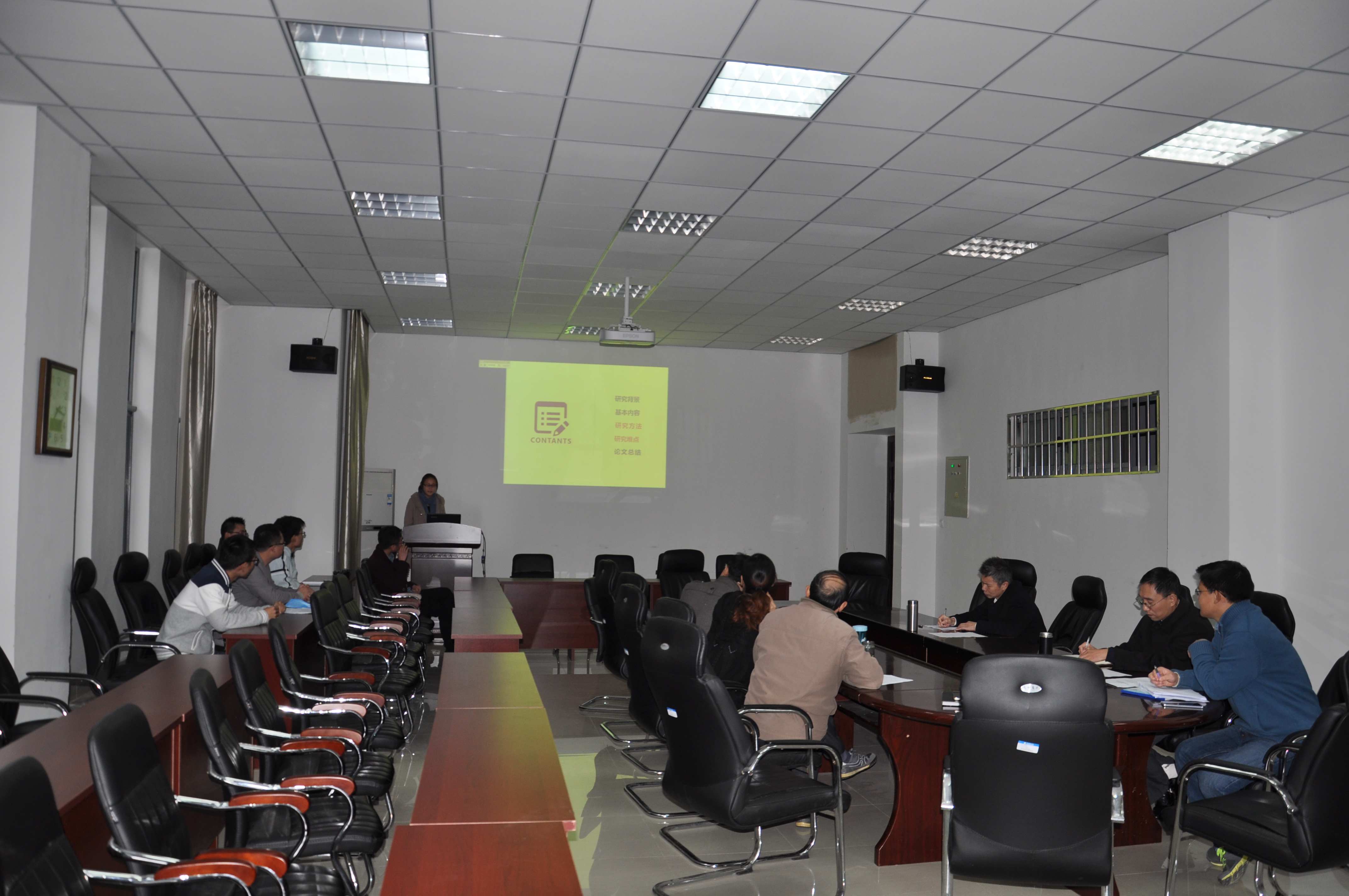 接下来,7位研究生从项目的学术价值、理论与现实意义、创新性、研究目标、研究内容、研究方法和技术路线等方面进行了汇报。