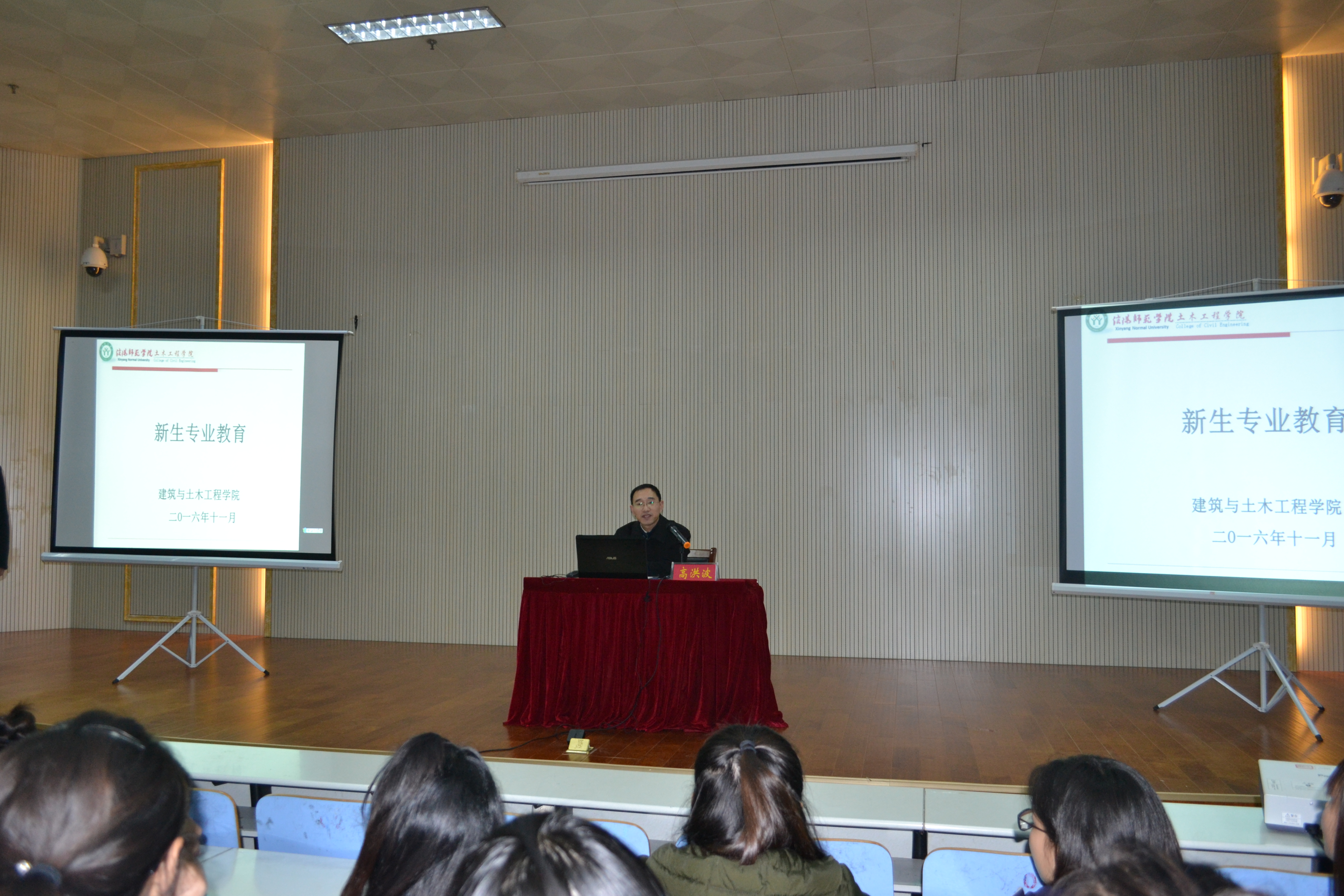 的简要介绍。高洪波从学院近30年来的发展历程、专业和学科建设情况、实验室和实习实训建设情况等方面进行了介绍。二是关于学院专业人才培养方案的解读。包括专业课程设置、人才培养目标、人才培养模式、实践教学等方面的情况;三是关于学院相关专业概况的详细讲解。高洪波为同学们分析了土木工程专业的就业前景以及多元化的就业途径。四是关于人才培养的理念和专业学习方法的阐释。高洪波结合自身经历及学生就业、考研等事例,在专业学习方法上给予建议和指导,希望同学们能秉承校训,勤奋刻苦,努力钻研,学好专业知识,祝福同学们都能拥有美好而有意义的大学生活。