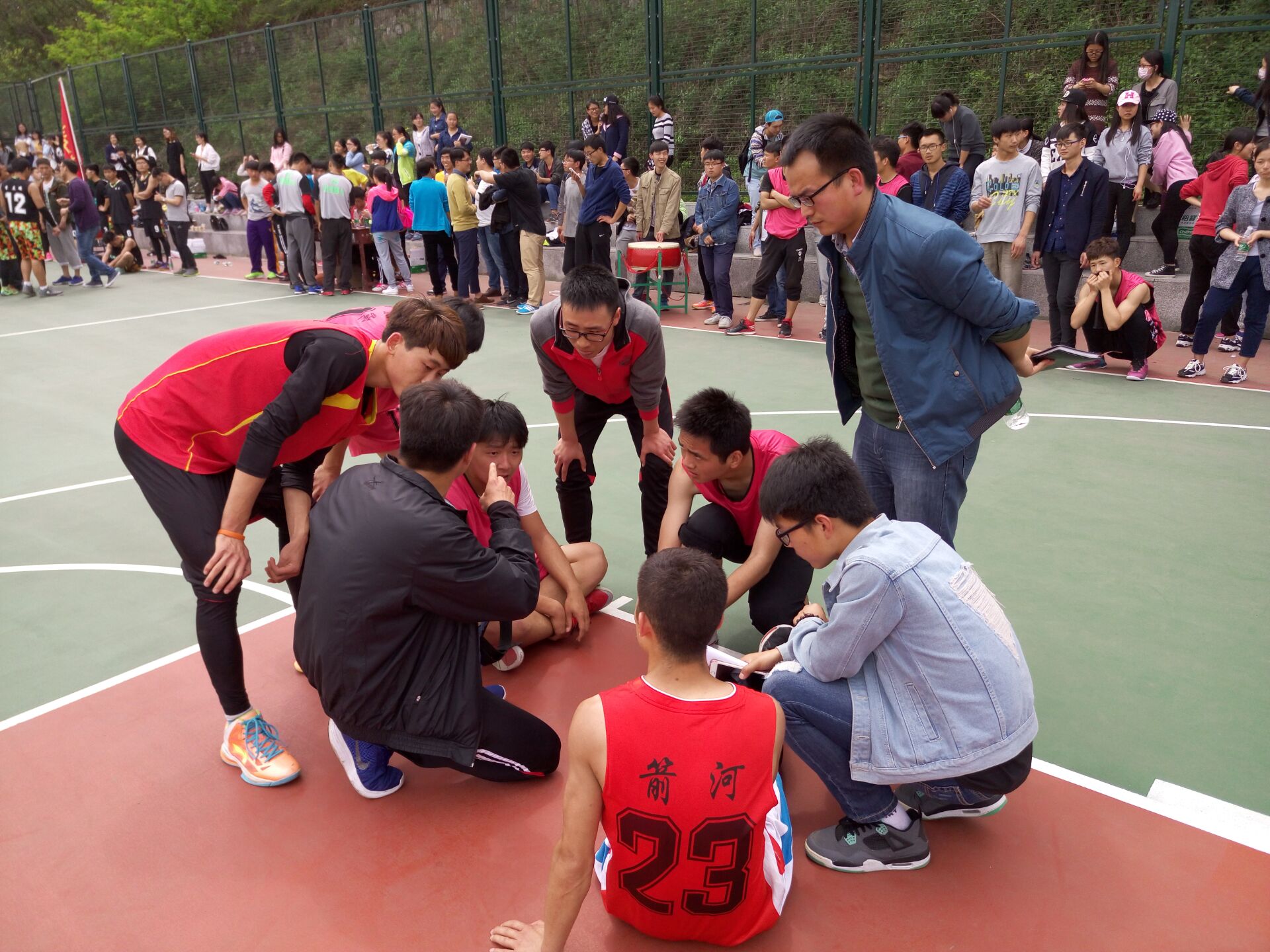 (本网讯 赵梦菲 张璐玉 孙宇)48日中午12:30,土木工程学院和经济学院男篮在西操场四号篮球场展开了谭山杯篮球赛四强席位的争夺战。土木工程学院团总支书记冀鹏老师亲临比赛现场,与全校数百师生一起为球员呐喊助威。
