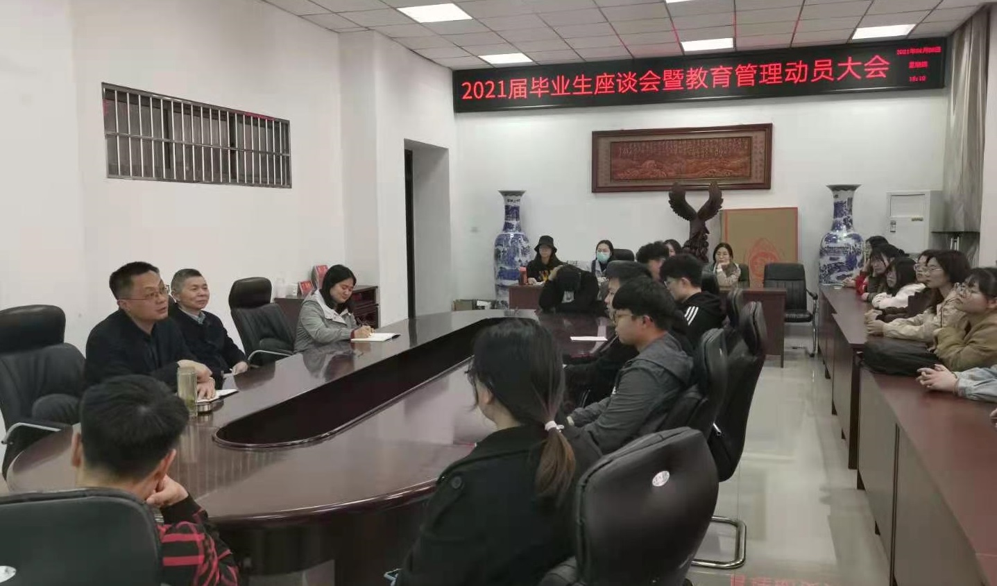 于4月8日下午4点在综合实验楼206会议室召开2021届毕业生座谈会暨教育管理动员大会。学院党委书记黄学玉、副书记方明科、毕业班辅导员及毕业生代表40余名参加了会议。