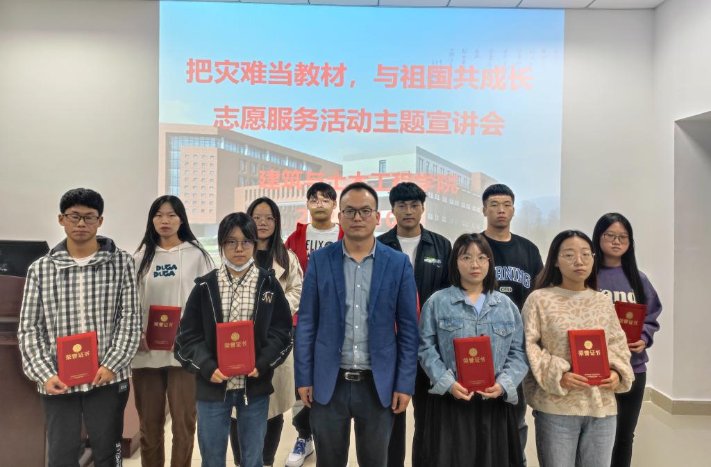 于10月13日晚上6:30在综合实验楼206会议室召开“把灾难当教材,与祖国共成长”志愿服务故事分享暨表彰大会。学院党委书记方明科,党委副书记冀鹏,团委书记张晓博,志愿服务代表和学生代表50余同学名参加了会议,会议由冀鹏主持。