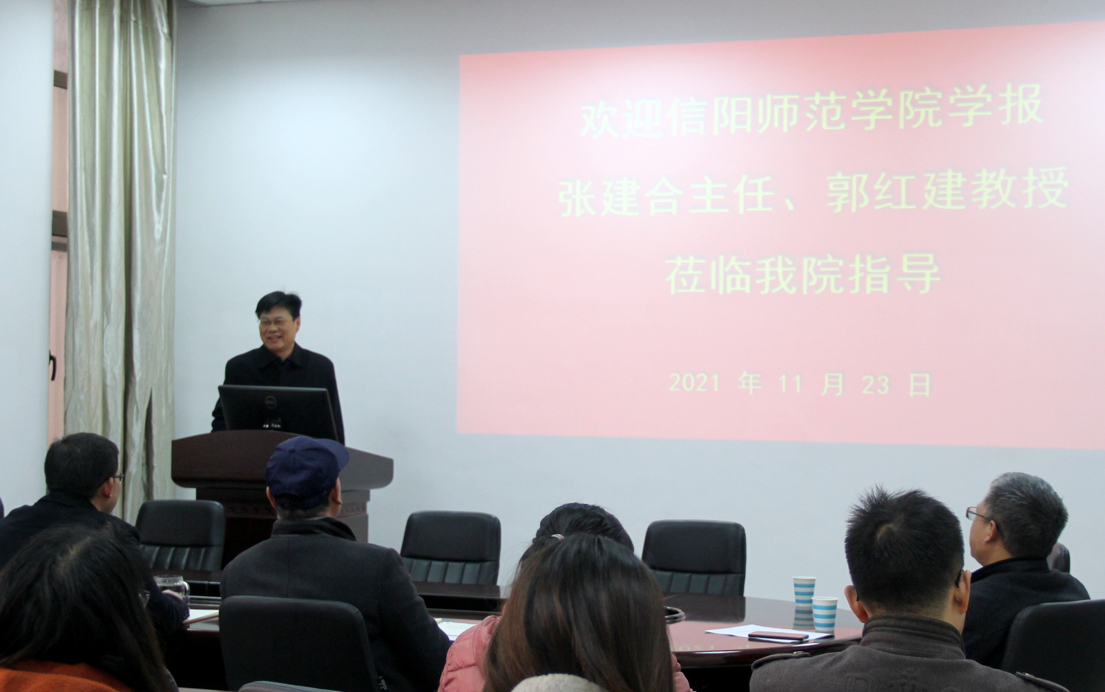 邀请,信阳师范学院学报编辑部主任张建合教授、副主任郭红建教授莅临建工学院,对信阳师范学院学报的办刊情况及相关政策进行了宣讲。学院领导班子全体成员和全体教师参加了此次报告会,会议由党委书记方明科主持。