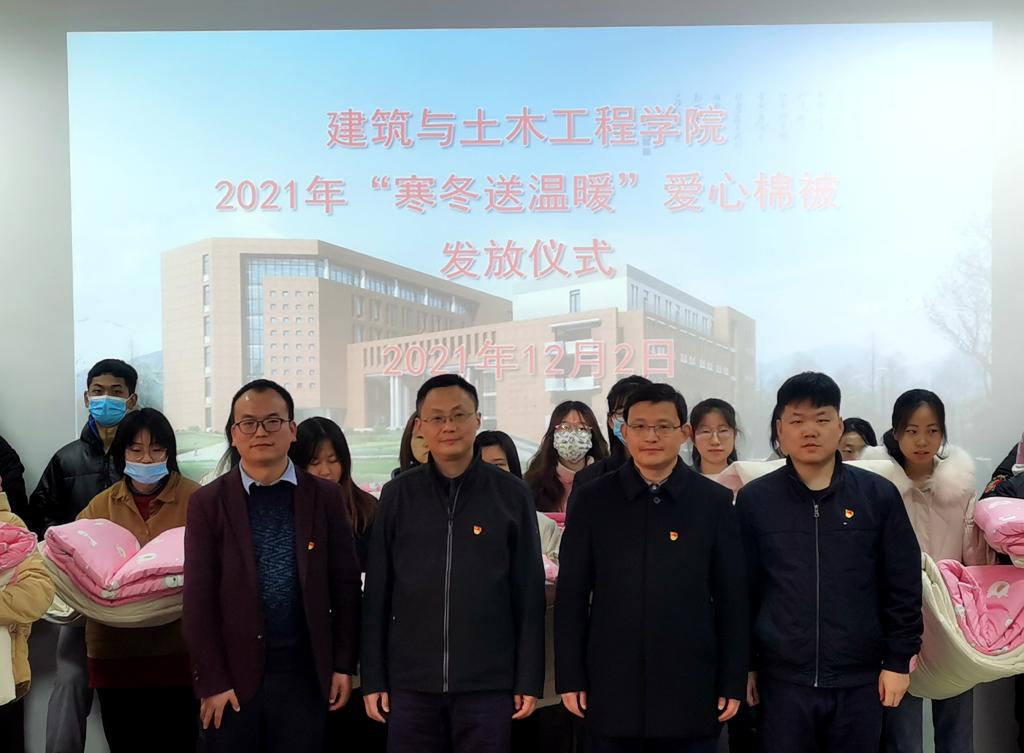 2021年“寒冬送温暖”爱心棉被资助学生名单》,方明科、周葆春为受资助学生现场发放了爱心棉被。