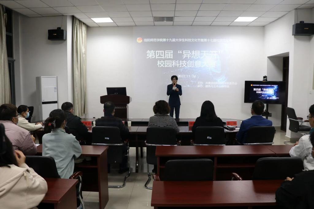 冀鹏致开幕词。他介绍本届“异想天开”校园科学创意大赛是第十九届大学生科技文化艺术节暨第十七届社团文化节的重要活动之一,以“青春心向党,奋进新征程”为主题,立足实际,结合专业,用发展的眼光和奇思妙想的创新力探索未来世界。希望同学们以大赛为平台,认真学习科学文化知识,提升综合素养,勇于探索实践,大胆展现自己,为将来走入社会,步入工作,建设社会主义现代化国家集聚青春力量。