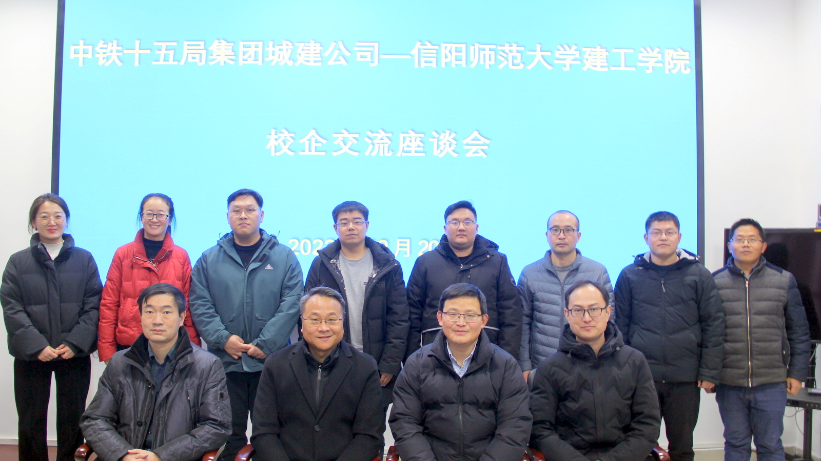 的基本情况;共同观看了中铁十五局集团宣传片、信阳CAZ双创产业园(信阳市在建第一高楼)项目介绍;随后双方就科研成果凝练、科技奖申报、研究生联合培养、产教融合等方面进行了深入交流,并达成今后在产教融合和人才培养等方面进一步加强合作的共识。