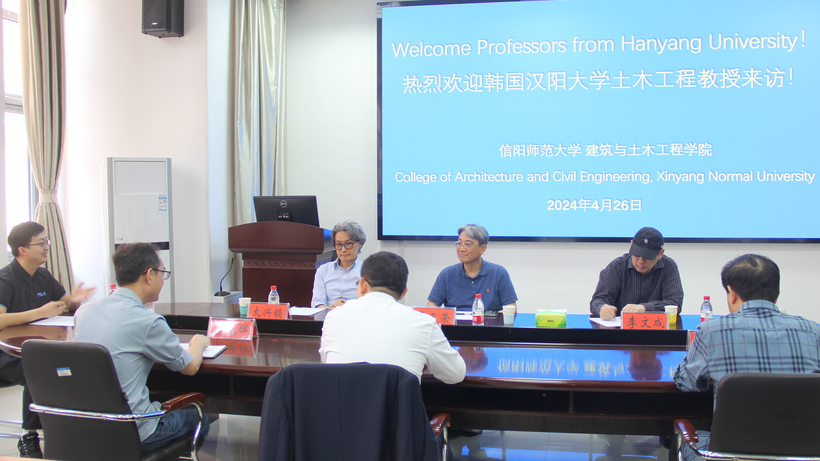 2024年4月26日下午,韩国汉阳大学(Hanyang University)建筑工程系(Division of Architecture & Architectural Engineering)卢三荣教授、太星镐教授、李文成教授应邀来建工学院学术交流,建工学院院长周葆春、副院长肖琪聃、副院长袁晓辉、教学秘书吴志强参加交流活动。